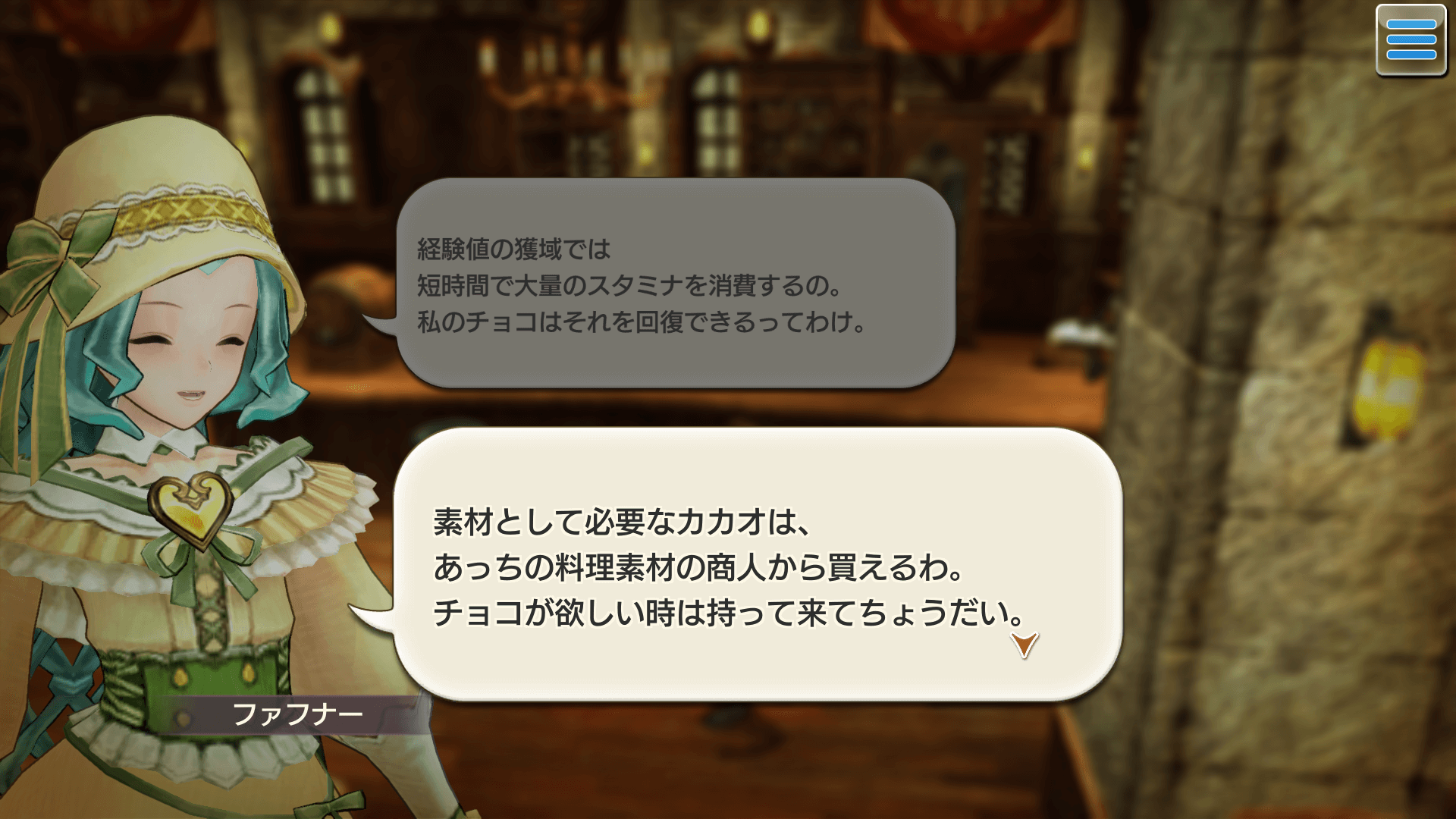 チョコの作成素材は、ネロ酒場にいるNPC「料理素材の商人」からゴールドで購入できます。