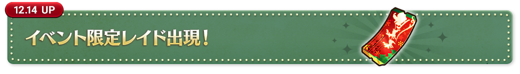 ※「クリスマスレイドチケット」は、11/30(火)メンテナンス終了後より毎日3枚ずつログインする度に配布されます。■レイドボス出現スケジュール