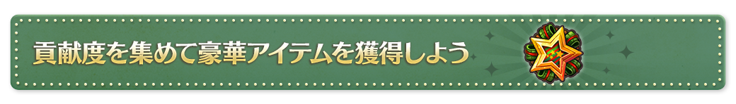 イベント限定のコンテンツをプレイして貢献度を獲得し、様々なアイテムやここだけの限定称号を獲得しましょう!貢献度獲得方法