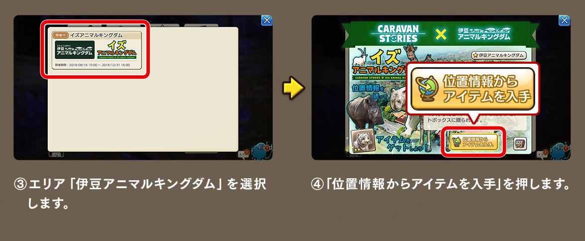 | 伊豆アニマルキングダム内での GPS限定ビーストの受け取り |