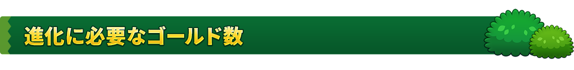 進化 必要ゴールド ★2→★3 100,000G50,000G★3→★4 300,000G150,000G★4→★5 1,000,000G500,000G