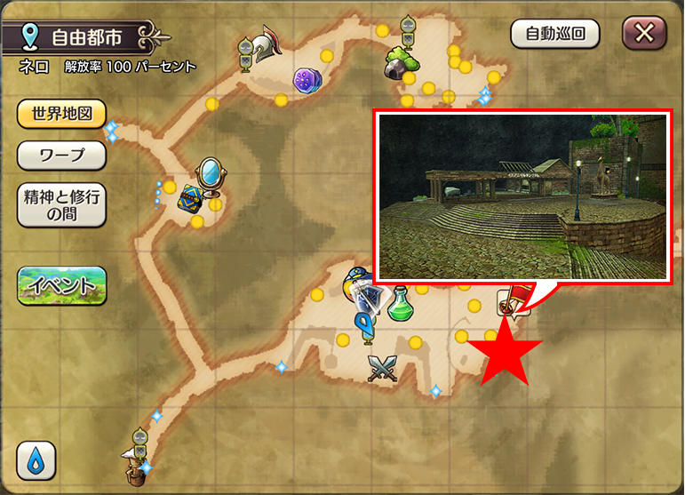 また、一度訪れたイベントエリアへは、画面左側に「イベント」から移動できますので、ご活用ください。