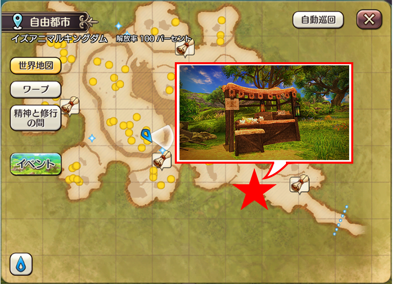 ★マークの位置にあるイズアニマルキングダム専用ゲートからイベントエリアへ移動することができます。
