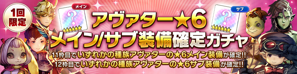 種族アヴァターの★6メイン/サブ装備が確定で出現する1回限定の特別なガチャを開催いたしました!