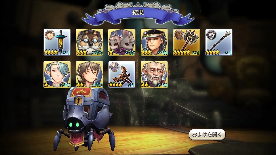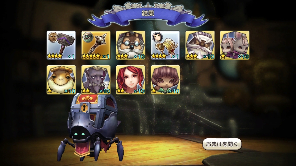 2018/11/28 21:04 公開 無料10連2日目と500ガチャ2回 雑日誌 スクリーンショット 2日目の無料10連分と500ガチャの残り2回分です。☆5はアンギラのサブとボグスのメイン(かぶり)です。アンギラのサブは☆6チャレンジ候補です。(無理に選ばなければ2個は候補です) 氷十郎 リンクをコピーしました 前の旅日誌 旅日誌一覧 次の旅日誌 コメント