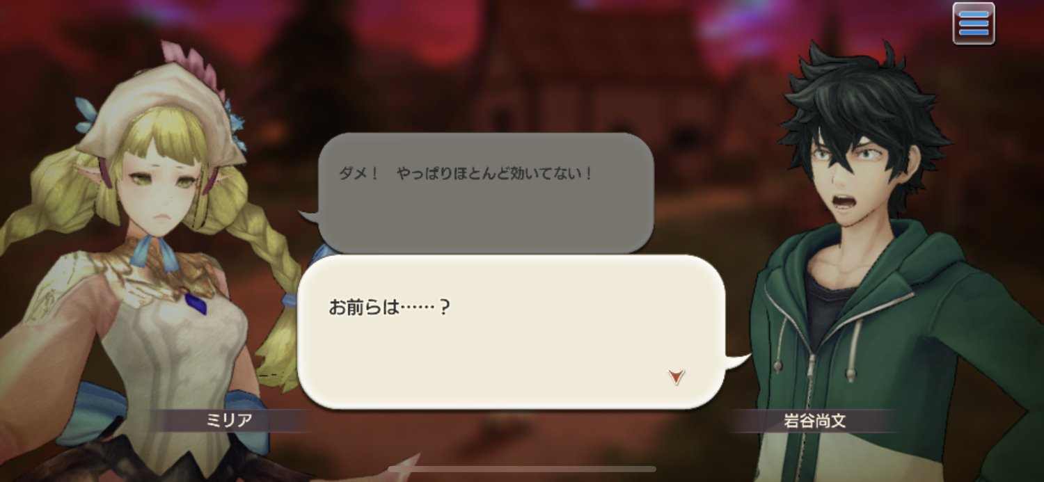 コメントありがとうございます!エルフ転生済みのキャラバン持ちで、オープニング?で岩谷が仲間になったという表示が出るのでて、リユート村に入るのですが他プレイヤー以外のアイコン(ビースト、アイテム)が表示されなく、ログアウトするとまたオープニング映像&岩谷が仲間になったのループが続いてます(T-T)