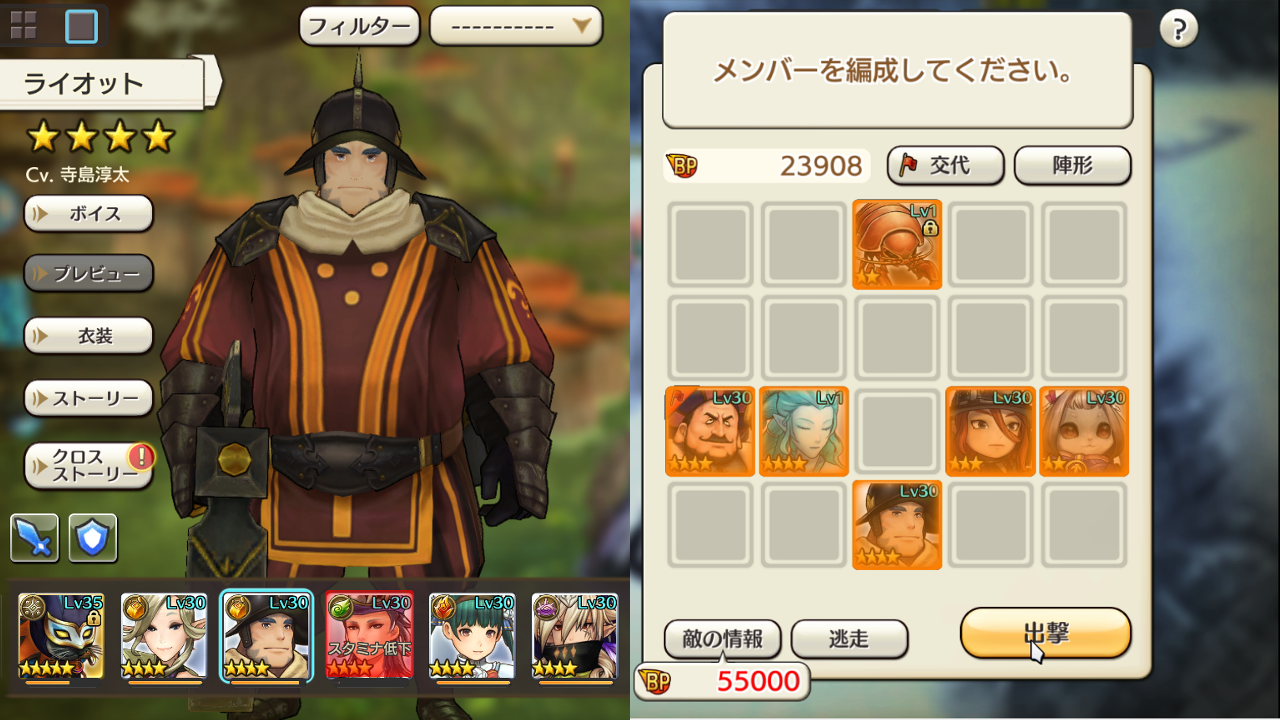 オフェンスライン Lv8(キャラの位置は画像1を参照,Lv任意)