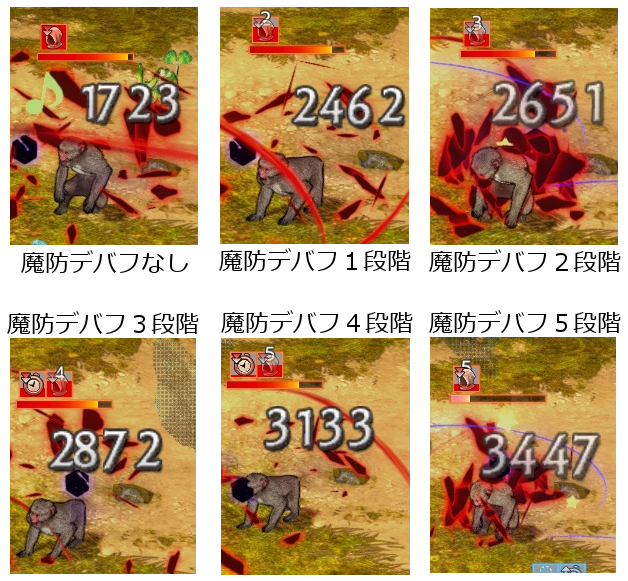 攻撃前デバフ4段階と5段階のダメージが異なっているので、