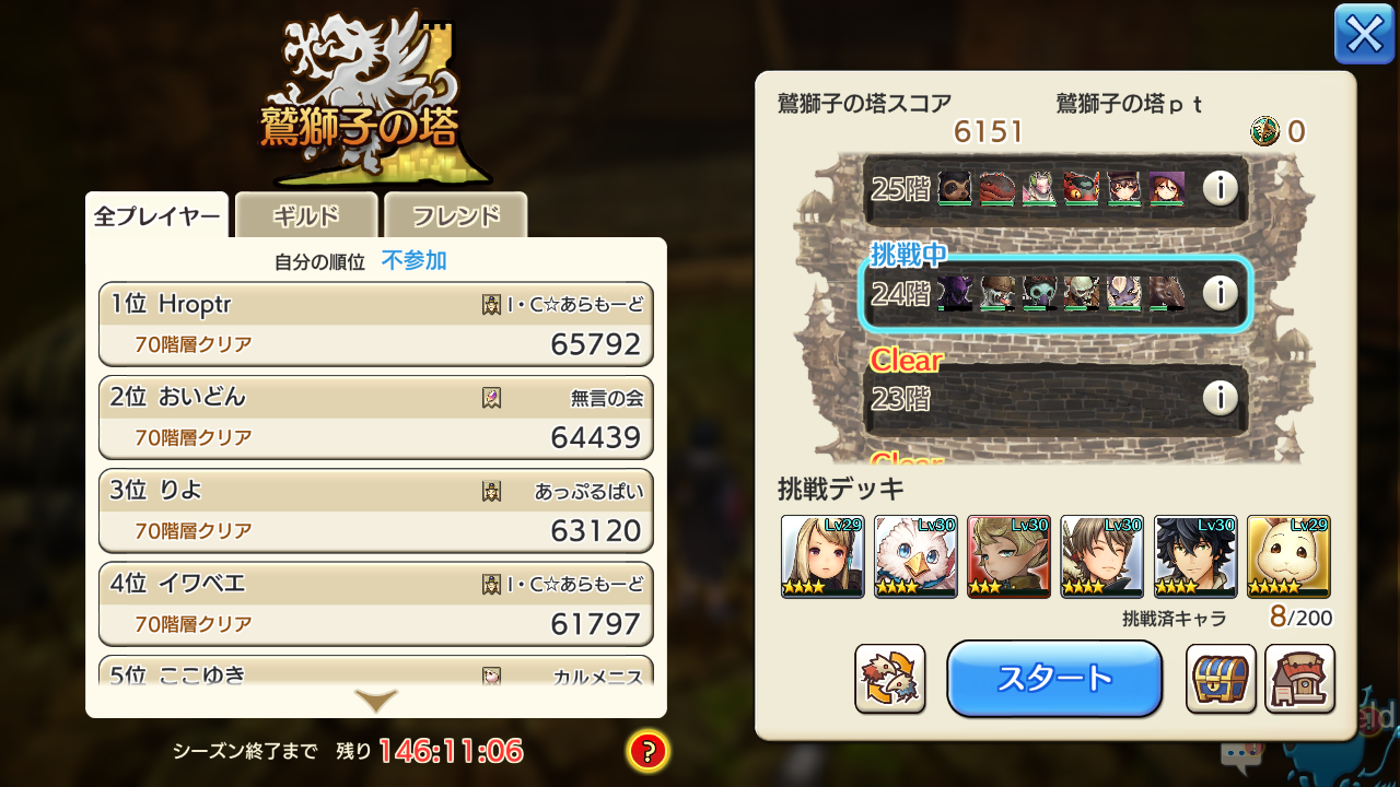 2021/04/07 17:20 公開 塔の攻略23階へ 雑日誌 初心者 キャラバン 以前、塔攻略が20階だったのが、3つですが上がりました。攻略の際、皆さんの色々の指摘、盾1でヒーラ増とか、パフ持ち、ジャマー等試しましたが、Lv、スキル、強化がメインにしているキャラより低い為、効果ありませんでした。戦略を楽しめる段階には程遠いと実感しました_| ̄|○前回3万、今回4万次は・・・オフライン巡回、前回はイベントの村でしたが今回はドガ地方、チャレンジ結果が・・・ 皐月 リンクをコピーしました 前の旅日誌 旅日誌一覧 次の旅日誌 コメント