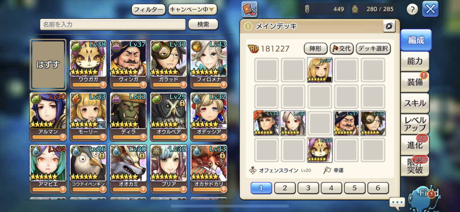 火力をもう1人入れたかったのですが、枠が足らずこのままで。