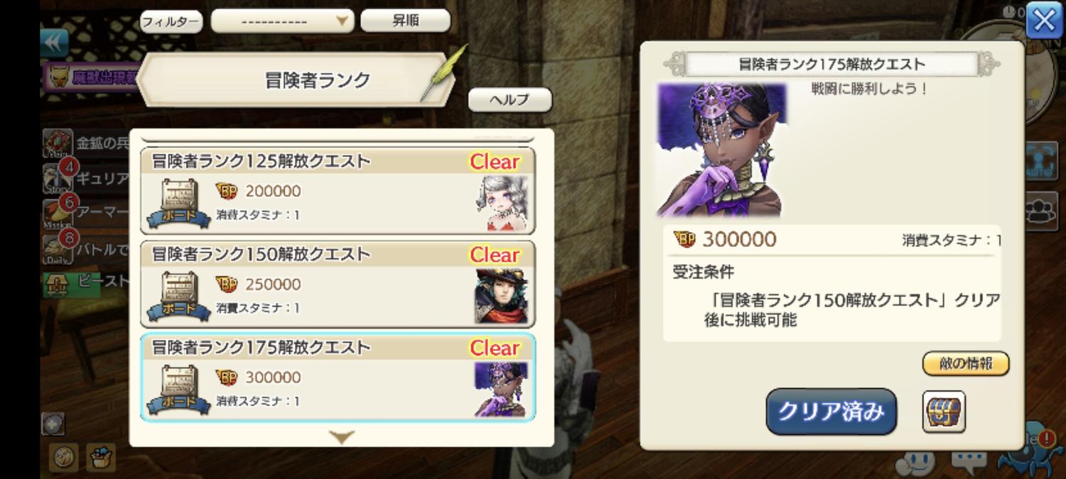 ずっと停滞していた冒険者ランク175をクリアできました。
