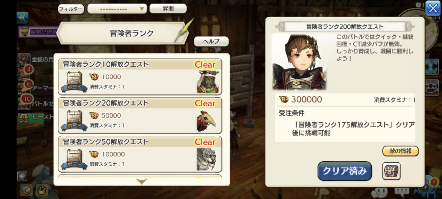 この流れで冒険者ランク200もやってみましたが、あっさりクリアできました。