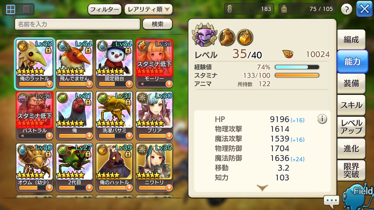 先週からのイエ島イベのおかげで星6ビーストが3体増えて、気づいたら星6キャラが10体になってました!(そのうち7体がビーストですw)