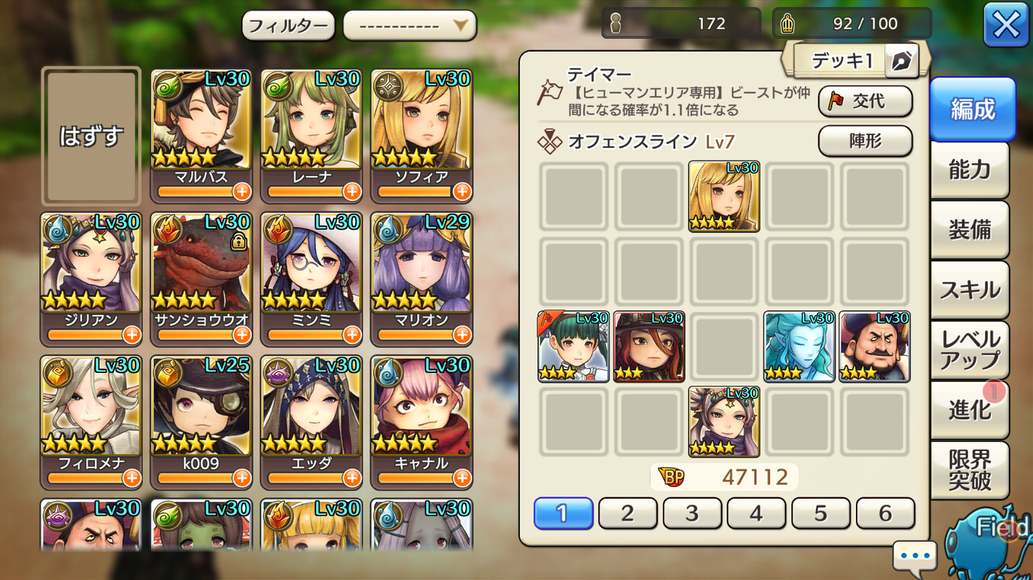 マルバス ★5 Lv.30 M5S5 ダメアップ54% スキル 4・4・3・1・3・1