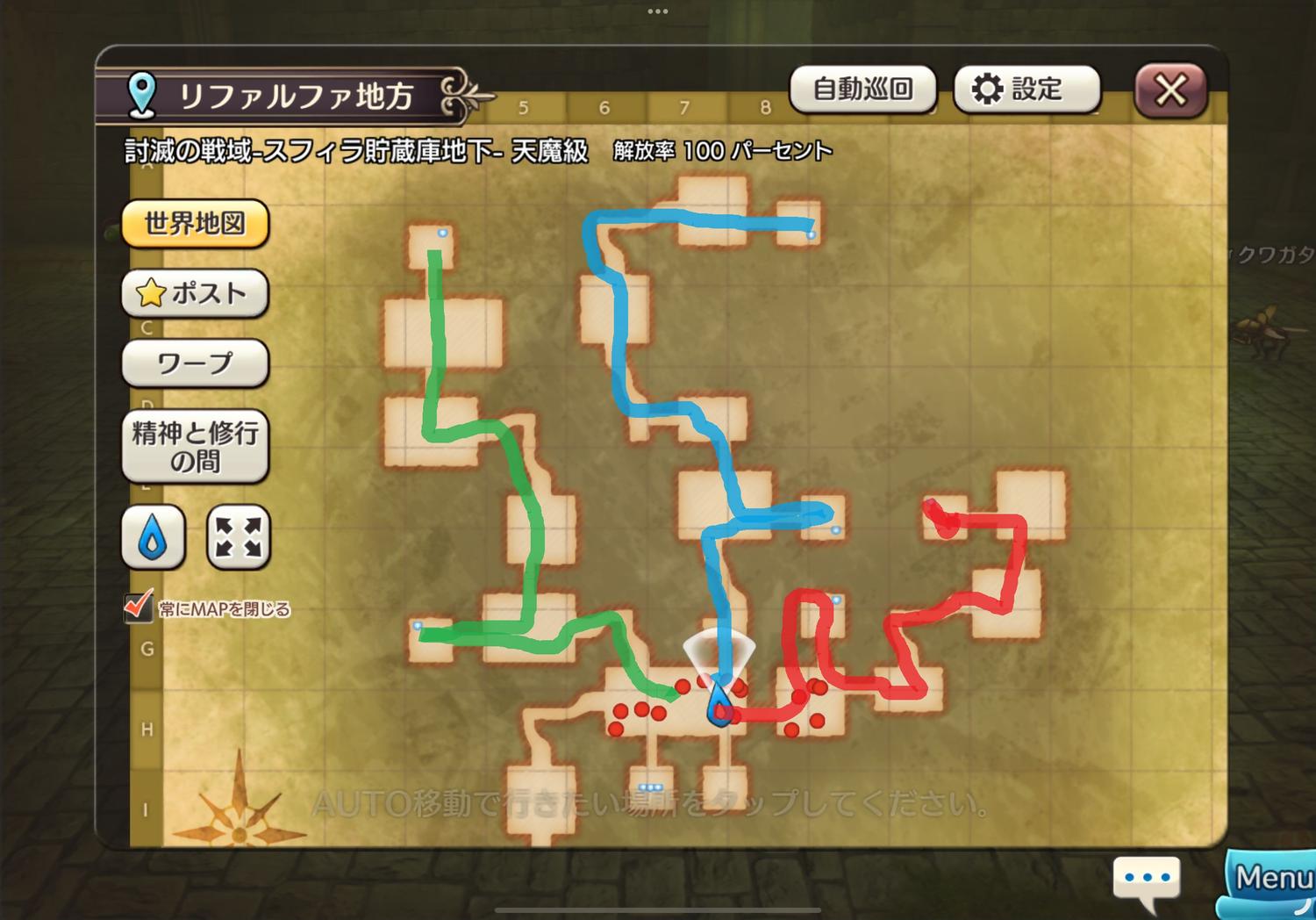 リーダースキル採取で、採取AUTOを使った場合、移動を録画しました。