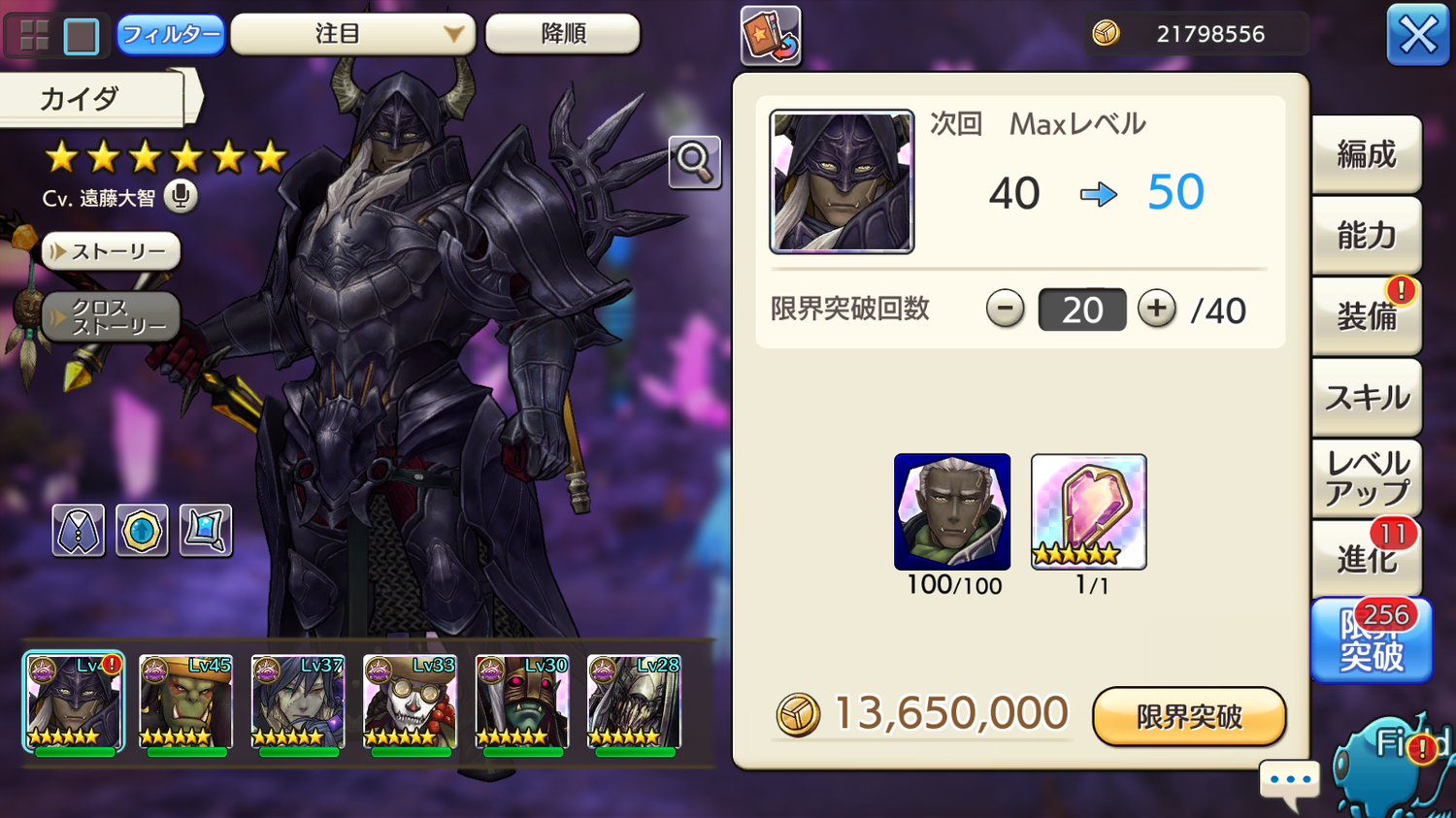☆6にして武器も両手☆6になったので、後はレベル50にするだけです。