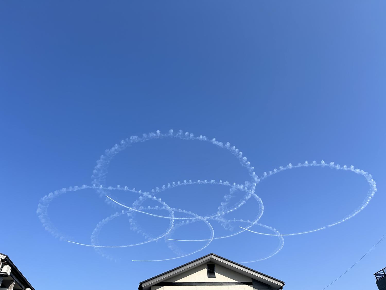 出勤前の午後、急に空から爆音が聞こえ見上げると何やらショーが始まった。