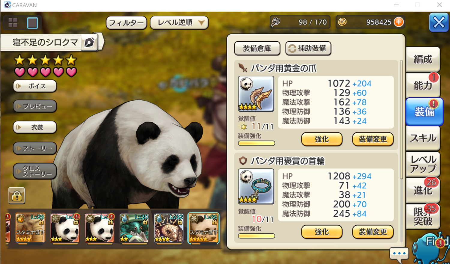 ということでさっそく回して★4装備はすべてパンダの★5装備合成チャレンジに回しました。