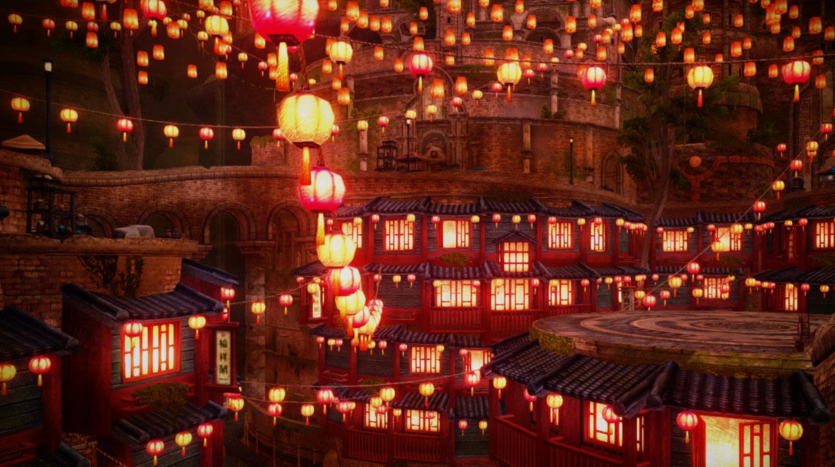 お祝いの灯りに満ちた広場にて、どすんと出会ったソンゴクウ。
