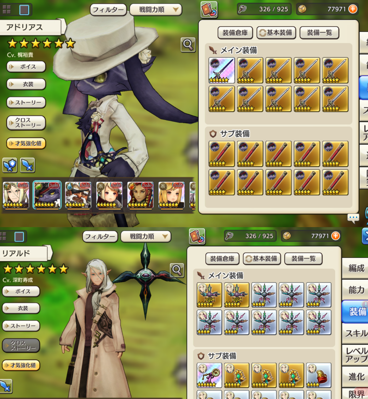 補助装備の差を考えるとアドリアスより上になる理由がわかりません(´∩ω∩`)