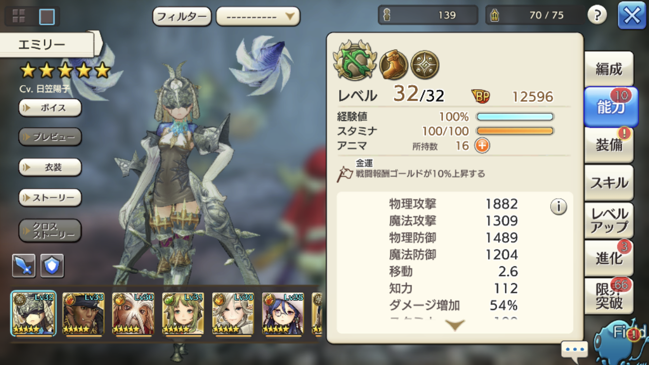 エミリーの両手が漸く最低限の修練値になったので覚醒ルーンを使ってないヒュマアヴァから没収してダメージ増加が54%に!