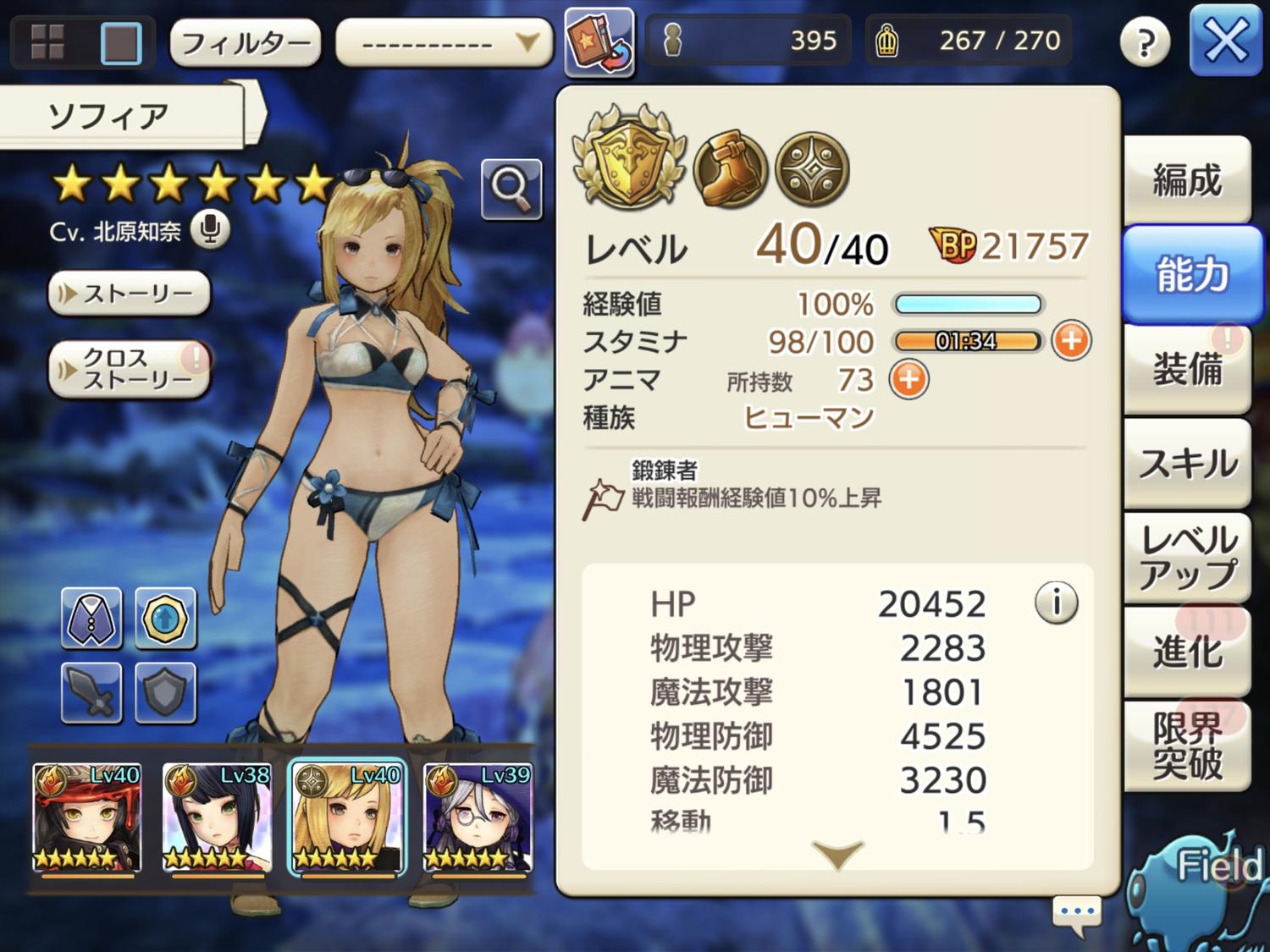 ソフィアがレベル40になってた。