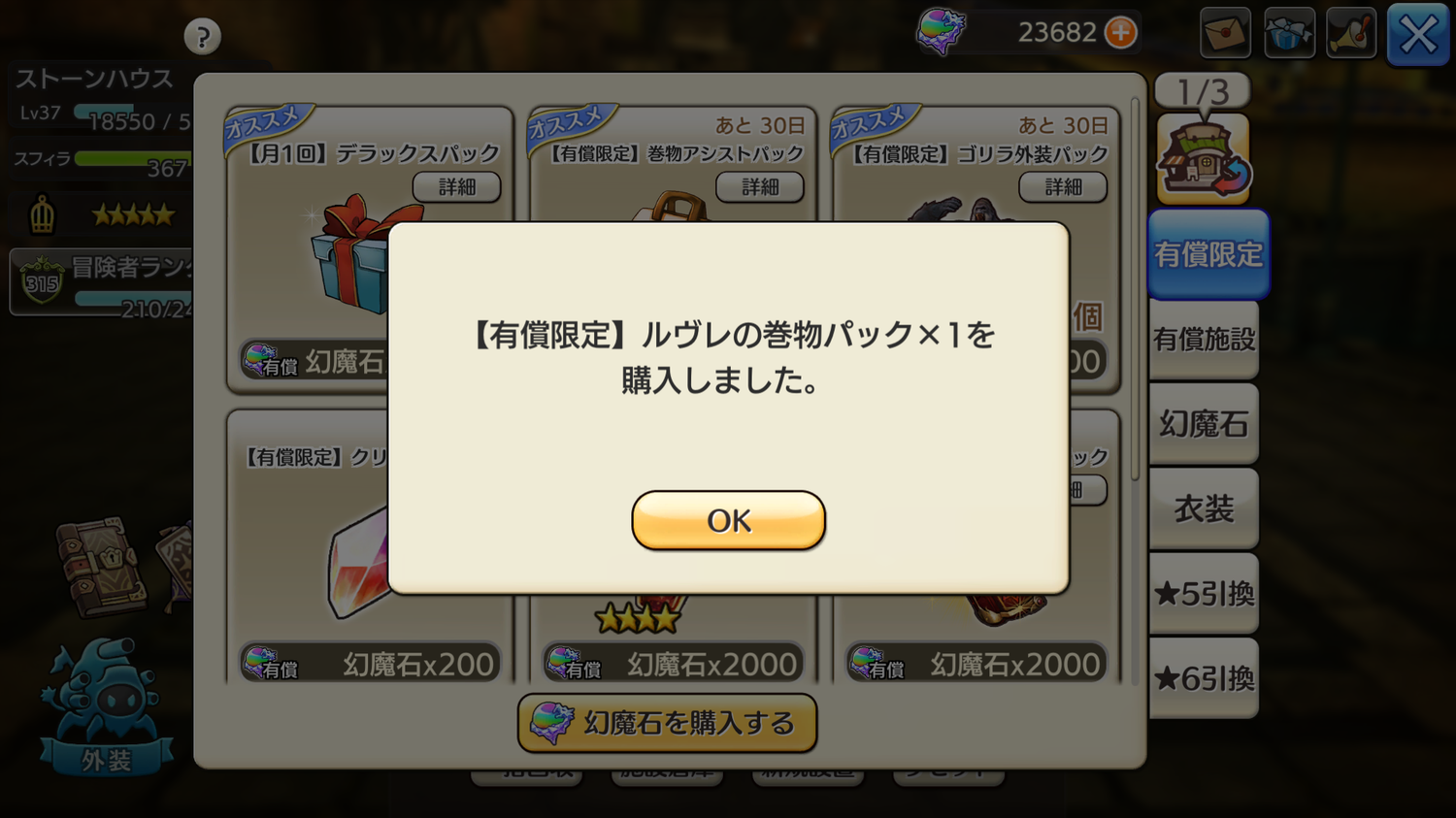 巻物も有償、支援パックも有償なら値段設定をもうちょい見直さないと、これじゃあ運営自ら「お金は欲しいけど冒険者に得は絶対させたくない!」 って言ってるようなもんですぜ