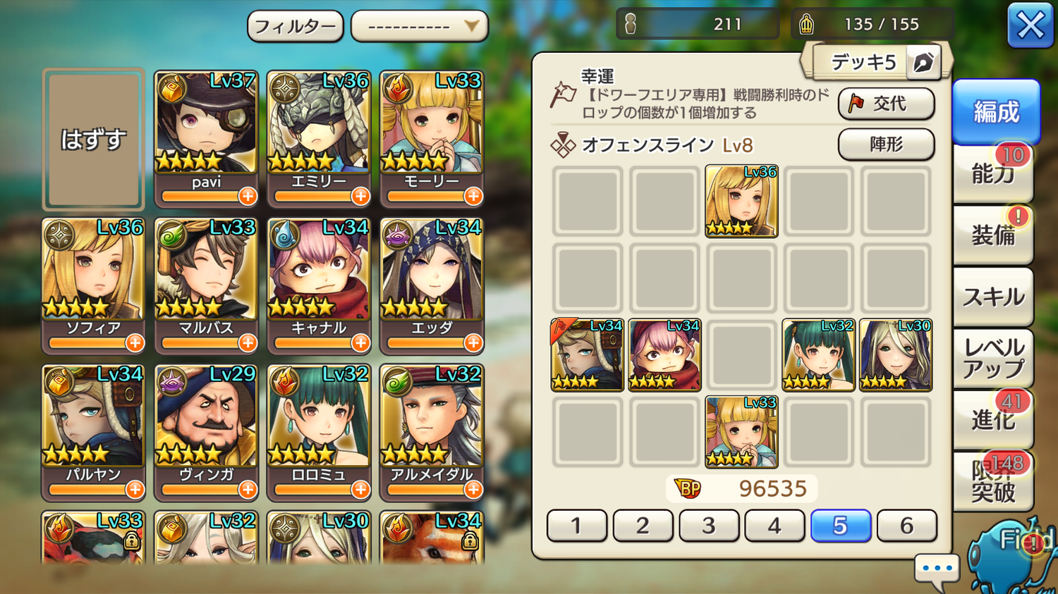 2018/07/31 18:31 公開 沈黙のアイリーンクリア!! 雑日誌 攻略 めっちゃ強かったですね(汗)一応、編成(SS2)載せておきます。ガチ物理火力構成では1/10くらいアイリーンのHP残ってしまったので、ヒーラー3人体制(パルヤン&スラヴェイア&キャナル)で猛暑対策し、火属性モーリーの火力だけに頼る感じで耐久しつつの撃破となりました。ちなみに水着持ちはソフィアとキャナルのみです。自分は物理な上に火属性の強いヒーローがモーリーだけだったので耐久戦になりましたが、魔法パ(特に火属性)が育ってる方は水着に拘らず一気に火力押し切りでも行けるような気がします。 pavi リンクをコピーしました 前の旅日誌 旅日誌一覧 次の旅日誌 コメント 1 佐藤ぺんこ ID: khb79gq3qqri ぱびさん!!クァール倒さんと!!んと!! 2018/07/31 19:35 2 pavi ID: mxvhiim2xpez >> 1 クアールって何ですか?新門番??エルフ領まだ行ってないっす! 2018/07/31 20:35 3 pavi ID: mxvhiim2xpez >> 1 クアールってユキヒョウの変異のやつですね(恥)そいつは出会ってすぐボコられて以来行ってないですw基本ストーリーもクエも一杯放置です。。。 2018/08/01 10:11 4 佐藤ぺんこ ID: khb79gq3qqri >> 3 じょ、冗談でクァールってなんですかって聞かれてるのかと思ってました(`д´;)ww1枚目の写真にクエスト残ってたので知ってるものだとばかりwクァールはラルミミクレヴィス、ロロミュ、その他火力のみで行けますよ(((o(*゚▽゚*)o)))かなり柔らかいですb 2018/08/02 11:48 5 pavi ID: mxvhiim2xpez >> 4 もう存在すら忘れてましたwクエとか特別必要なのしか見てないです(汗)ちょっと行ってみますかね~ 2018/08/03 10:14