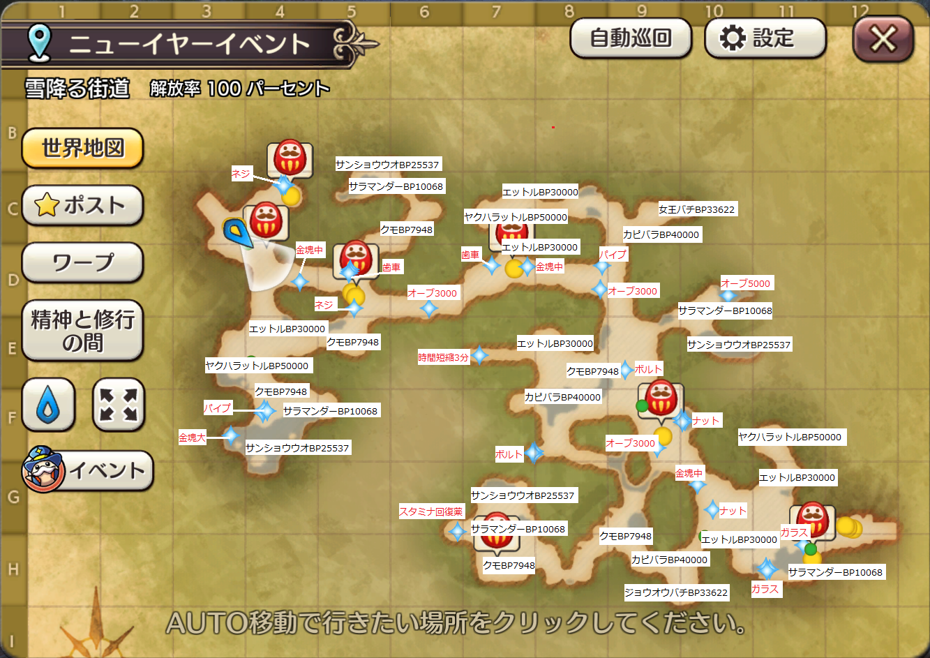 2019/12/30 17:55 公開 ビーストマップ(雪降る街道・朝焼けの岬) スクリーンショット ついに年末です(*'ω'*)イベに手をつけられないまま、帰省しております。このところ、まずマップを下調べしてからイベを効率よく進めようという流れができ、今回もマップ作成を優先してがんばりました。スマホでは無理なため、一時的に帰宅してPCの作業をしてきました(^^)vさて、そろそろ実家に戻らないとw シャサ リンクをコピーしました 前の旅日誌 旅日誌一覧 次の旅日誌 コメント