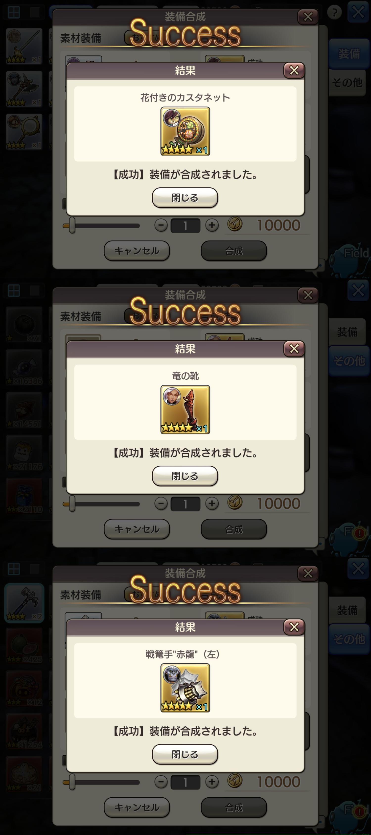 1日で☆5装備が3本も出ました。(出ない時は1週間出ない時もあるのに。)