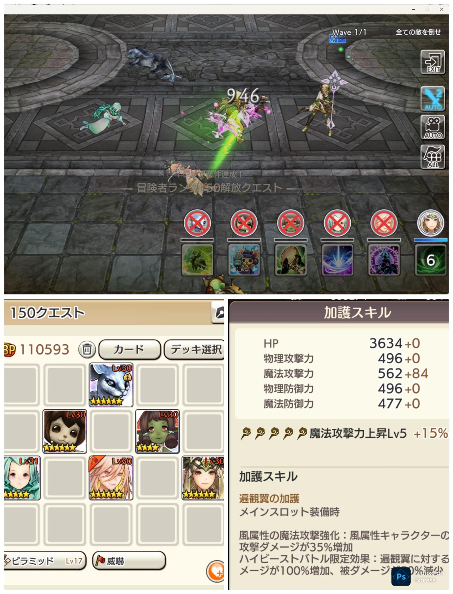 150は風のタンクがいなくて、タンク無しで、魔晶エルフ、ホーグランドさんの火力でゴリ押しました:( ;´꒳`;)