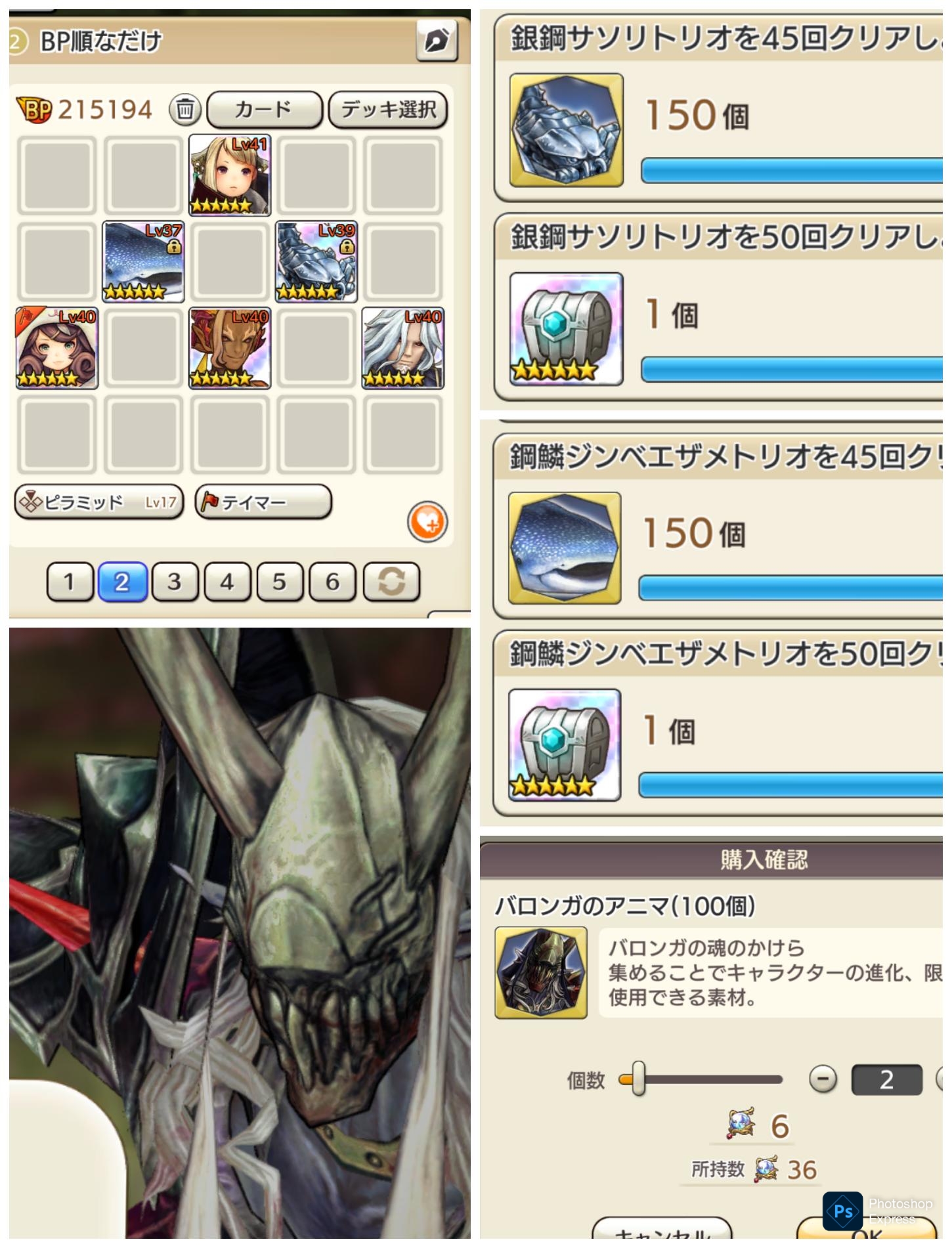 ジンベイザメとサソリはギルメンさんに助けてもらい両方ともトリオ50回クリアできました\(^o^)/ありがとう♪