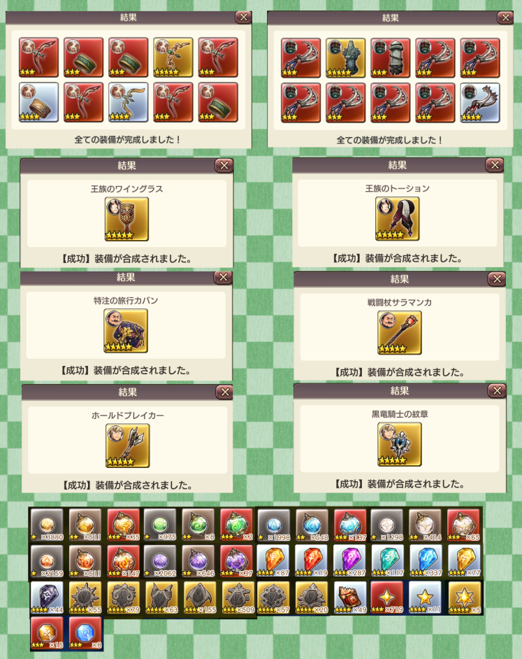 白ツメガネ、壺オジ、ラス様は早急に用意しないといけませんので合成祭りへ。