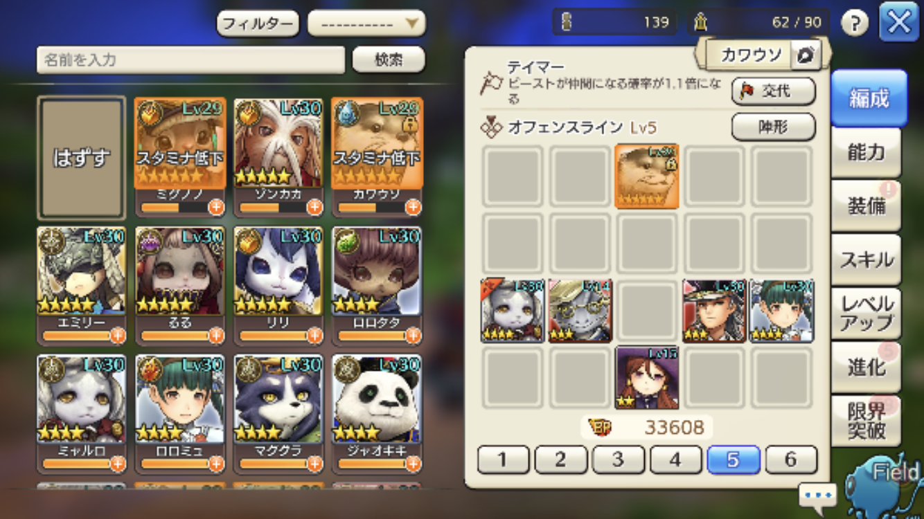 ロロミュでクイックをかけ続ければ、無敵が切れる前までにカワウソのASを打てるようになりました(いちおう保険でアルメイダルも入れてあります)