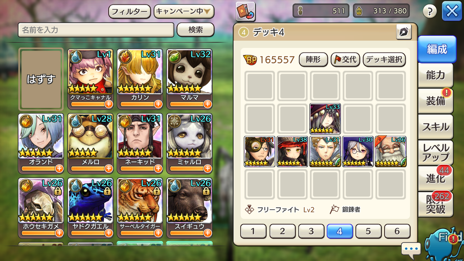 6.カーディロス ★6 Lv26 SLv:4441414 装備M5/S5(毒火力担当・ダメ増34%)