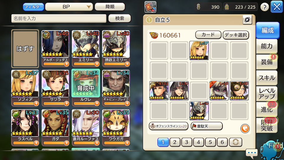 <5階の突破編成> オフェンスラインLv.20 BP:160,661