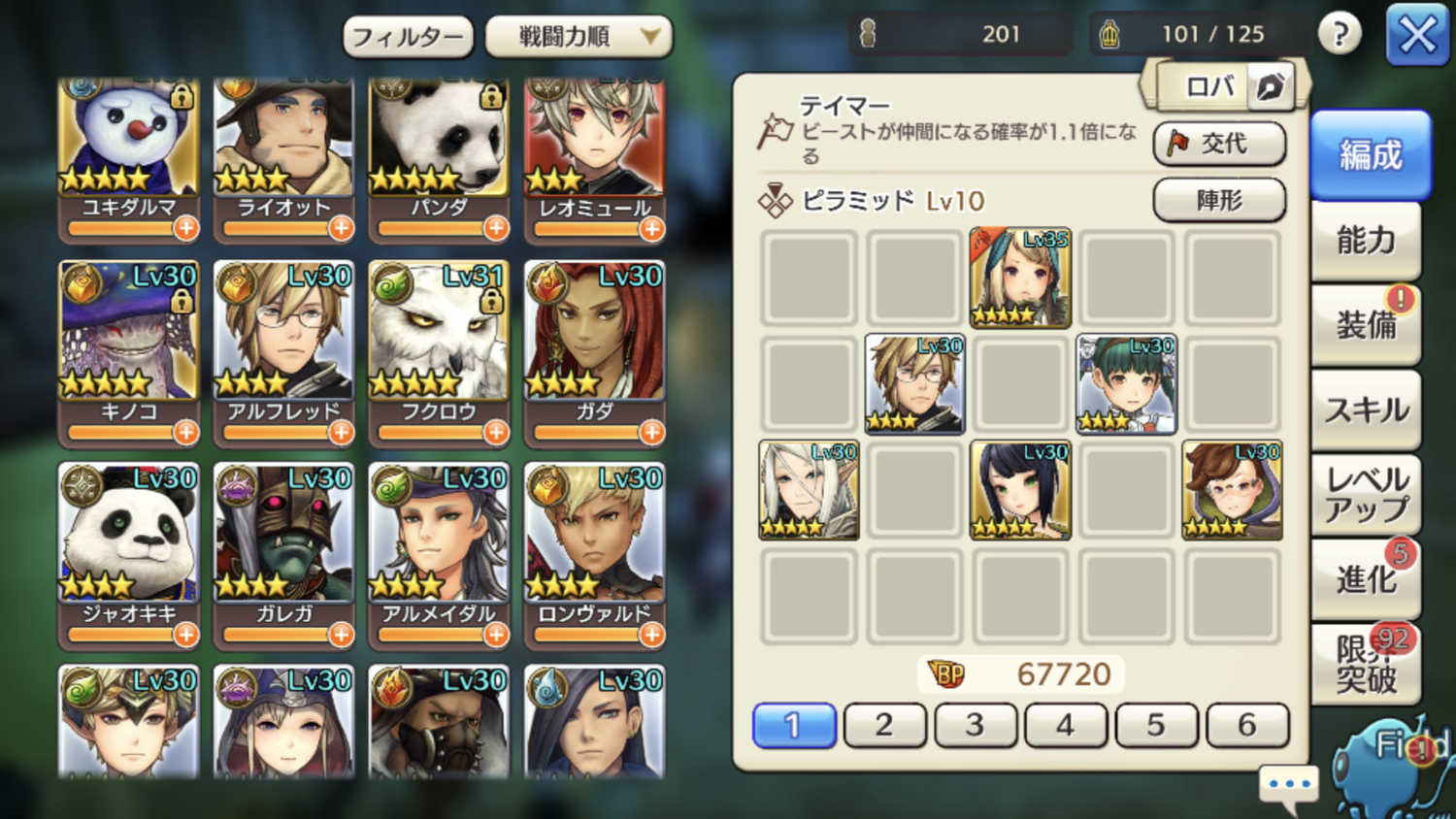 ロヴァニエもこの編成だったらもっと楽だったんじゃないのと思ったけど、それはそれ。ロロミュとゲシアバを強化するいい機会だったし。