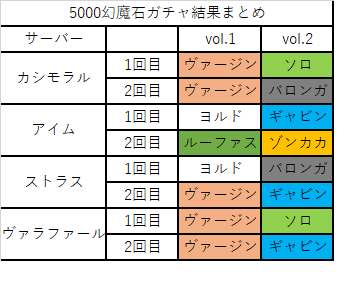 結果はスクショにまとめてある通りです・・・☆5枠のみですが。
