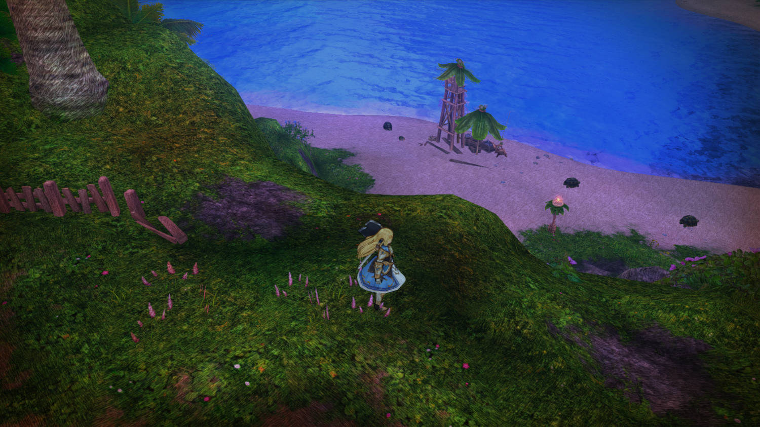 闇の宝珠があるクバグア半島って、地形の関係でポストから大回りで行くしかないんだけど、ふと下を見ると目的地の浜辺が見えてる!!