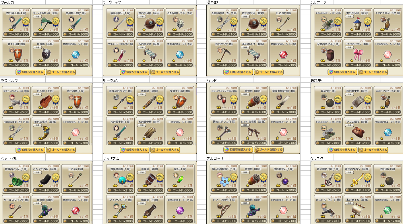 7/29 装備商人一覧