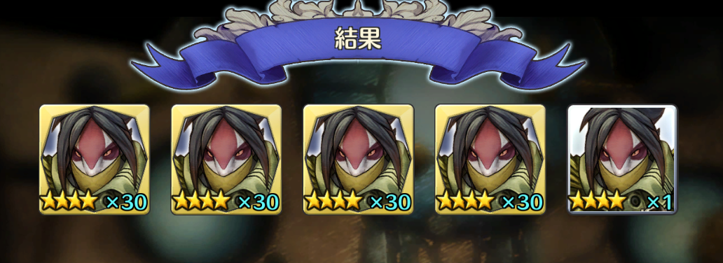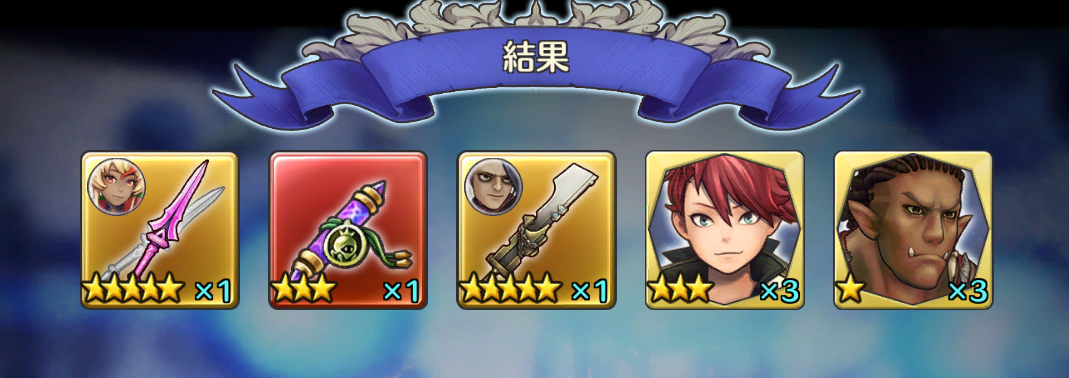 1回目青背景! 金武器2個やったー 両方もってなかったとこ!(えっまだ☆4武器を…?)