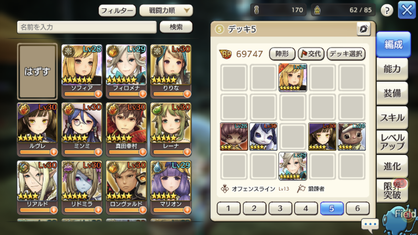 陣形はオフェンスラインLv.13(めちゃがんばった)