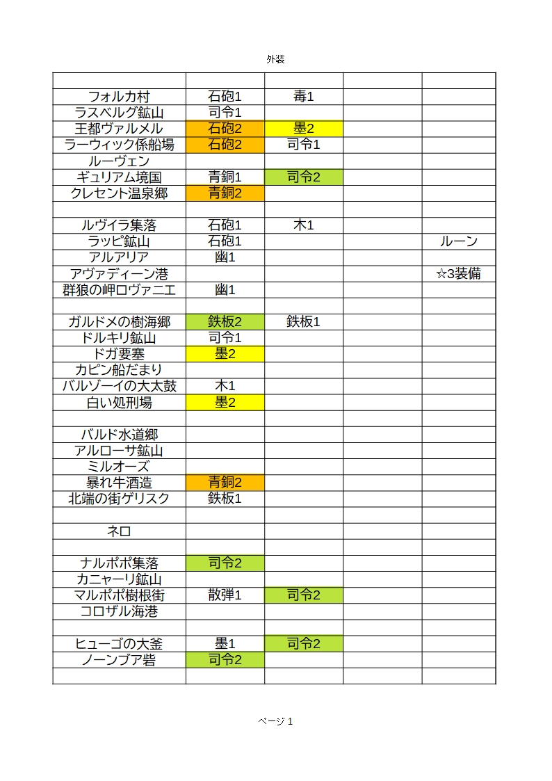 2020/09/09 05:00 公開 きょうの毒砲 雑日誌 2020/9/9水曜日 ルーンはラッピ鉱山(エルフの鉱山) スクリーンショットは闇の行商のラインナップです ※表の数字はレアリティです数量ではありません※司令塔は全種類区別なく「司令」と表記※装飾品は表記してありません アン リンクをコピーしました 前の旅日誌 旅日誌一覧 次の旅日誌 コメント