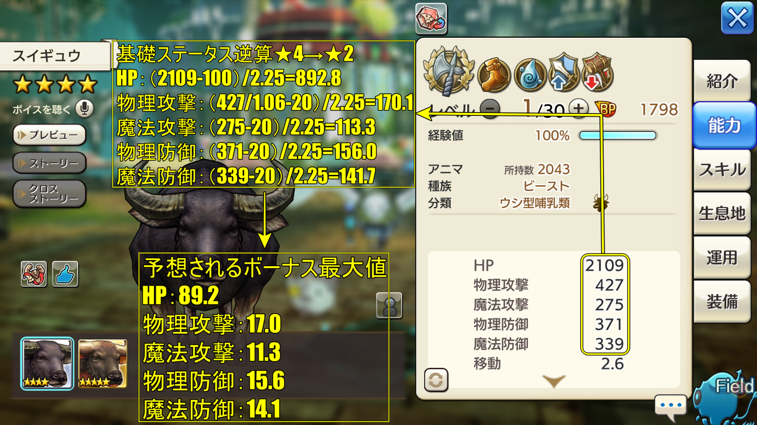 今回は久々★4からですのでボーナス値予想は図鑑からの逆算です。