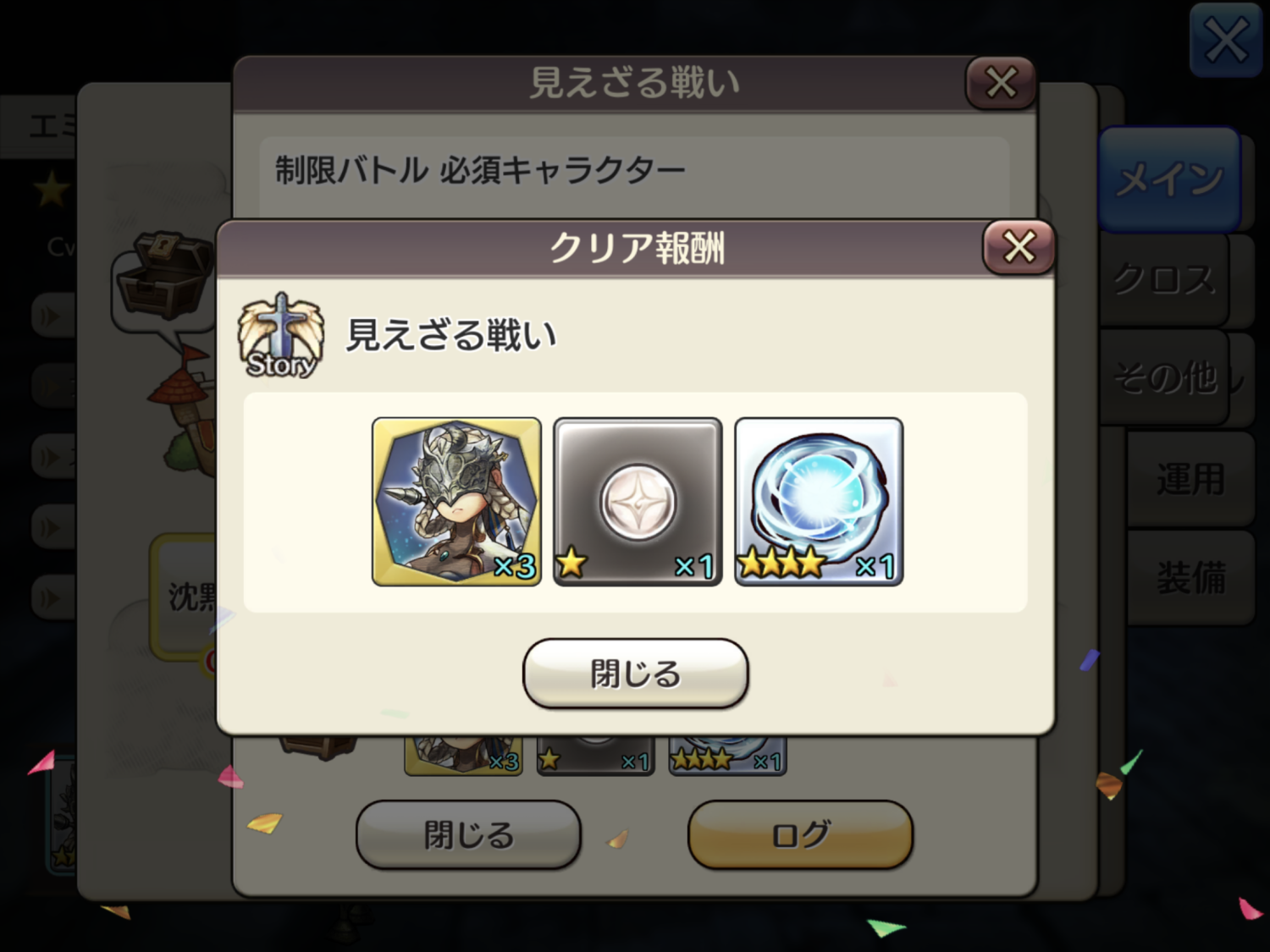 一応、敵は地属性なのでラルフを使いましたが、☆5のソフィアいけたような気がしました。ただ、アニマが足りないのでキャラバンから1日1回、闇の行商からヒューマンのアニマからしか手に入りそうにないのでしばらくお預けです。
