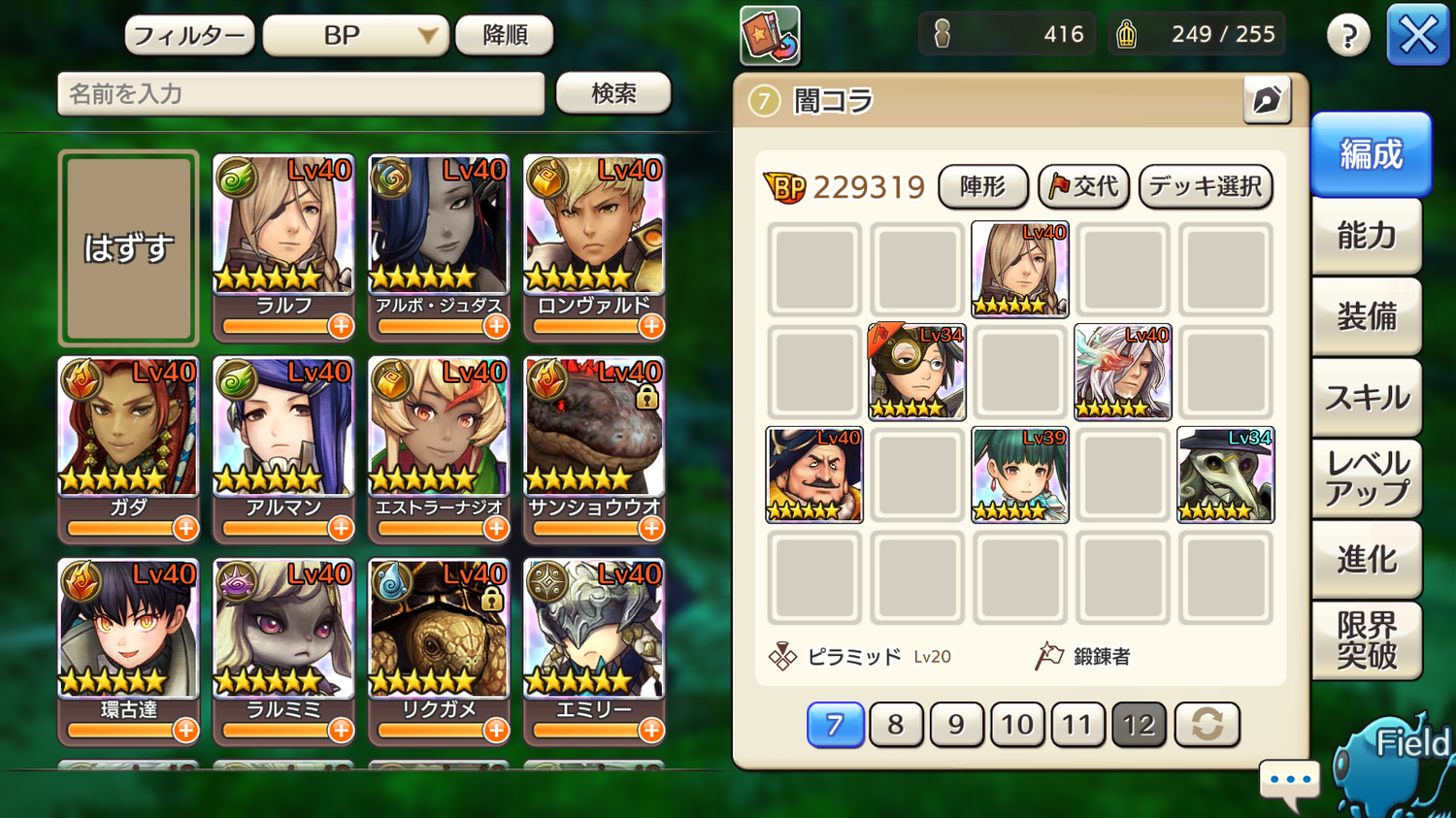 火コラは両手5のメルロがユウリ+ガラッドで介護しないと耐えられず、ユウリを入れるとアタッカーが1枚になり、エストorアルボだけでは火力不足なので、ソロ攻略はしばらく先になりそうです。