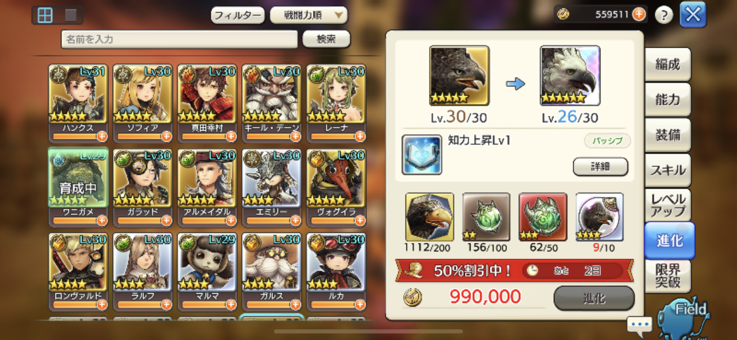 昨日もオオワシ狩りに明け暮れまして、そのおかげで宝珠が良い感じにポロポロと6個も落ちてきたので、幸先良いな〜と大急ぎでMAXまで育成。