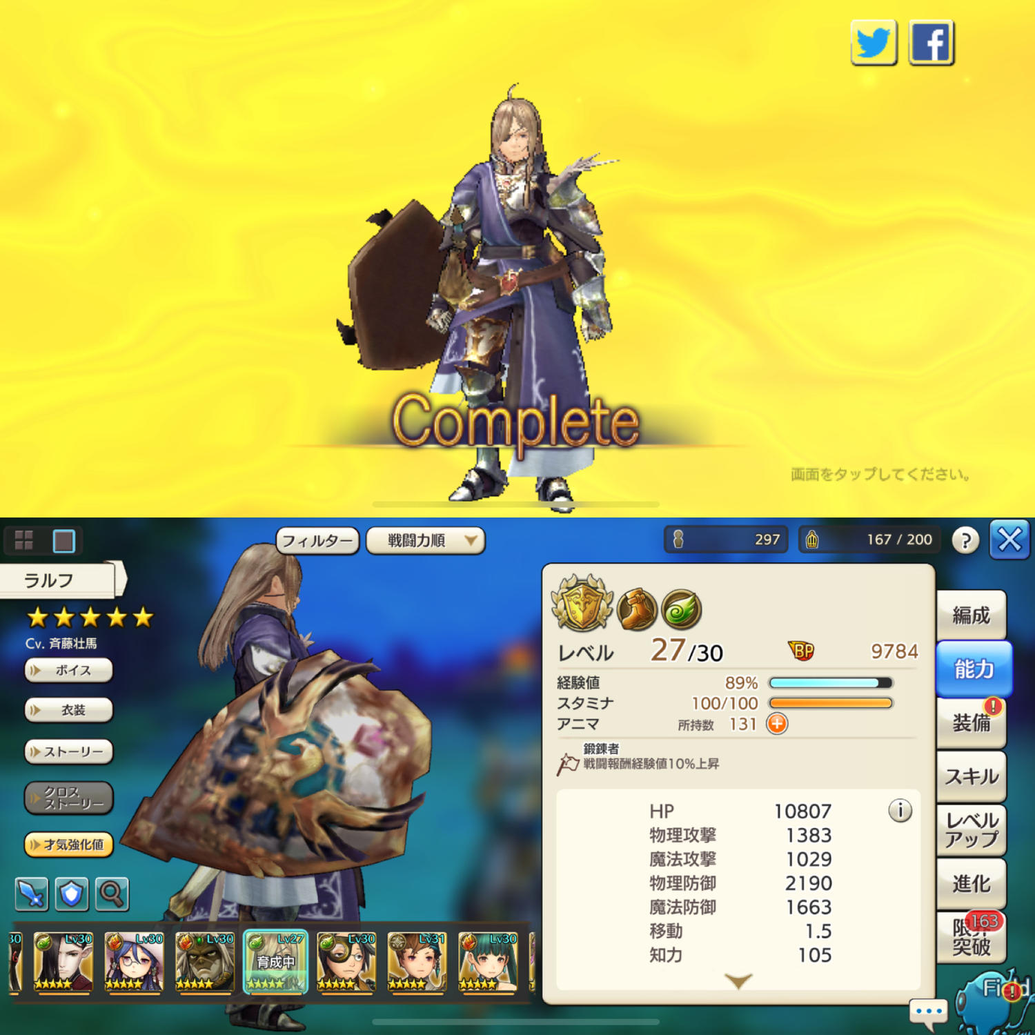 ラルフはずーっと進化させてあげたくて、でもうちは風属性キャラの使用率が高いので随分と待たせてしまいました?