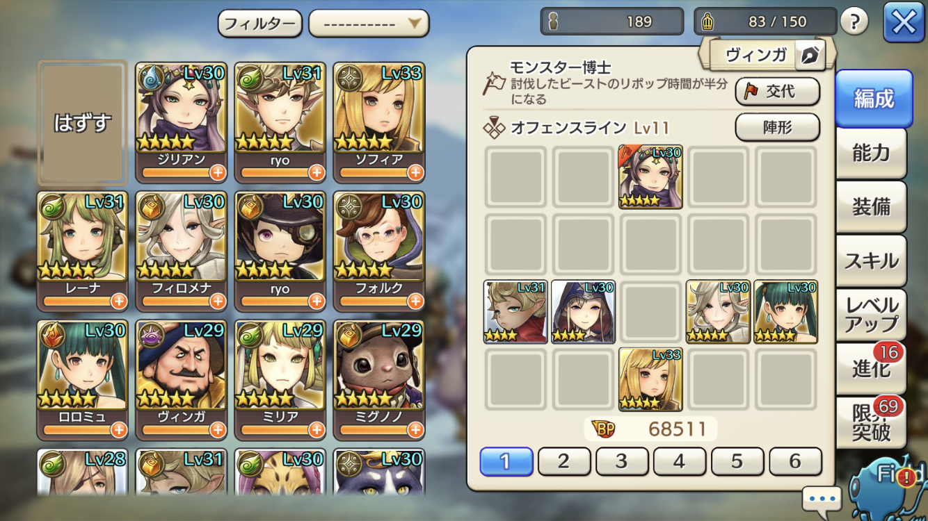 アドバイスを参考にPT組み直してみました〜もう限界までジリアンをゴリラにしますレベラゲの黄本足りないよー買わせてくれーー