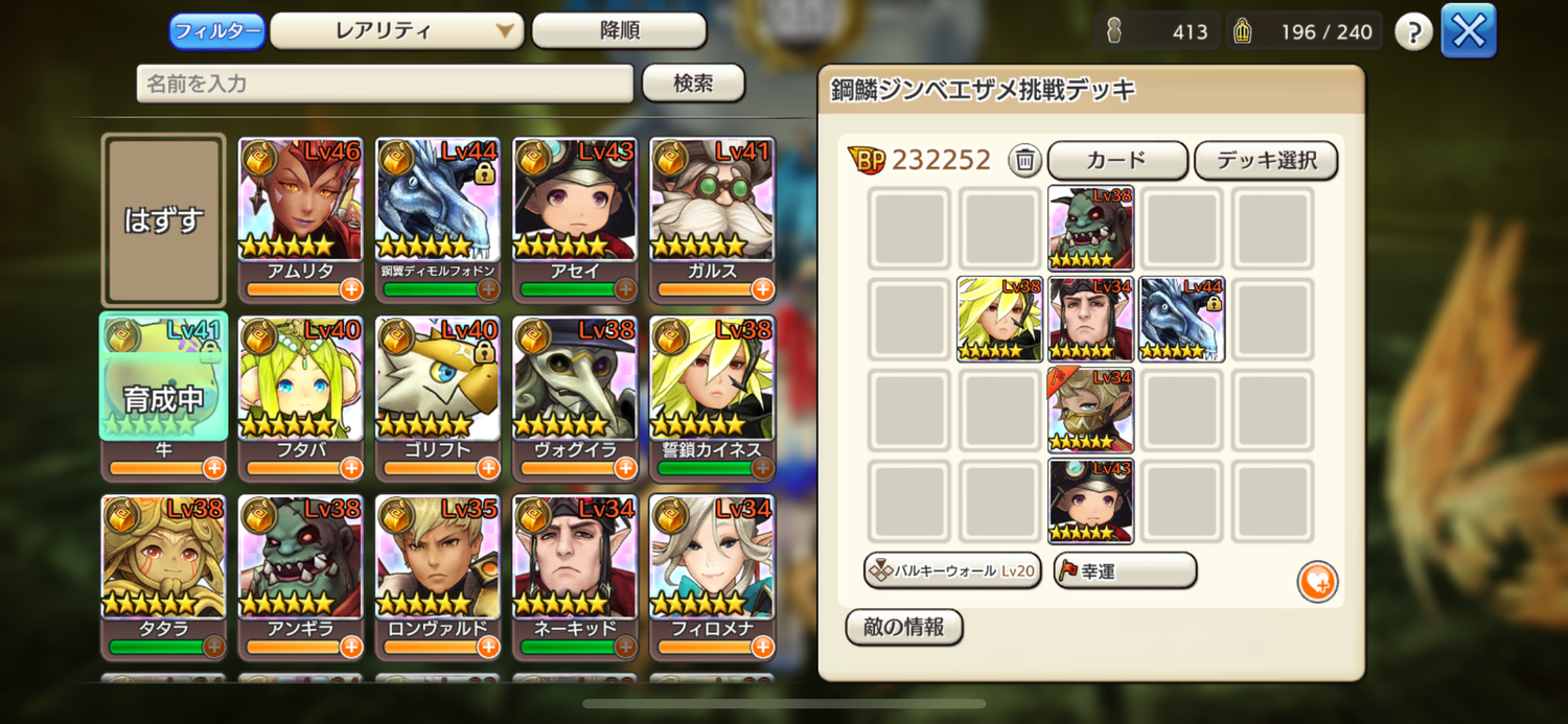 あれ?まだタタラもジョイナスもレベル上げや才気はこれからなんですが…まぁ今回使ったのは、魔晶ドワアバ(レベル43金梅)、ディモ(レベル44虹埋め)、誓鎖カイネス(レベル38)でした…